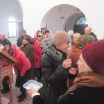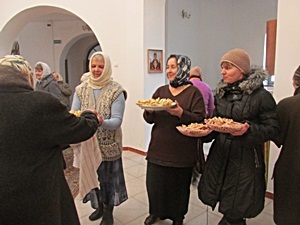 2 марта – заговенье на Великий пост, последний день масленицы. Прихожане нашего храма захотели отметить этот день по-особому. После Божественной литургии заботливыми хозяюшками было организовано традиционное угощение этой недели – блины. Пусть каждый пришедший в храм человек ощутит приближение Великого поста. После угощения и улыбок батюшка предложил всем подумать о предстоящем подвиге поста во славу Христову. Как известно, второе название этого дня Прощёное воскресенье. И это не случайно. Никакой пост и молитвы не пойдут нам на пользу, если мы не примиримся со всеми нашими ближними, не простим взаимно друг другу нанесённых обид. Поэтому в церкви предусмотрена специальная служба, во время которой мы просим у Бога и друг у друга прощения. По уставу служба совершается вечером, но по сложившейся практике в нашем храме она проходит после Божественной литургии, чтобы максимально большее количество людей могло примириться, дабы вступить в пост с чистым сердцем.